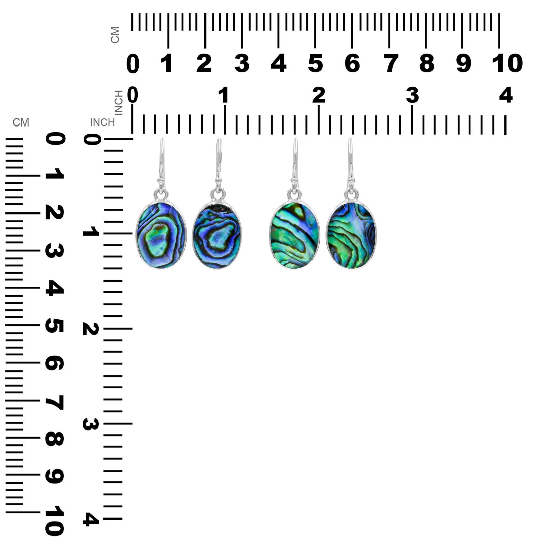 - These charming Earrings measure approximately 1.4 inches in length, including the ear hook, and showcase an 18 x 13 mm oval faceted Abalone Shell, in a bezel setting to enhance its beauty.